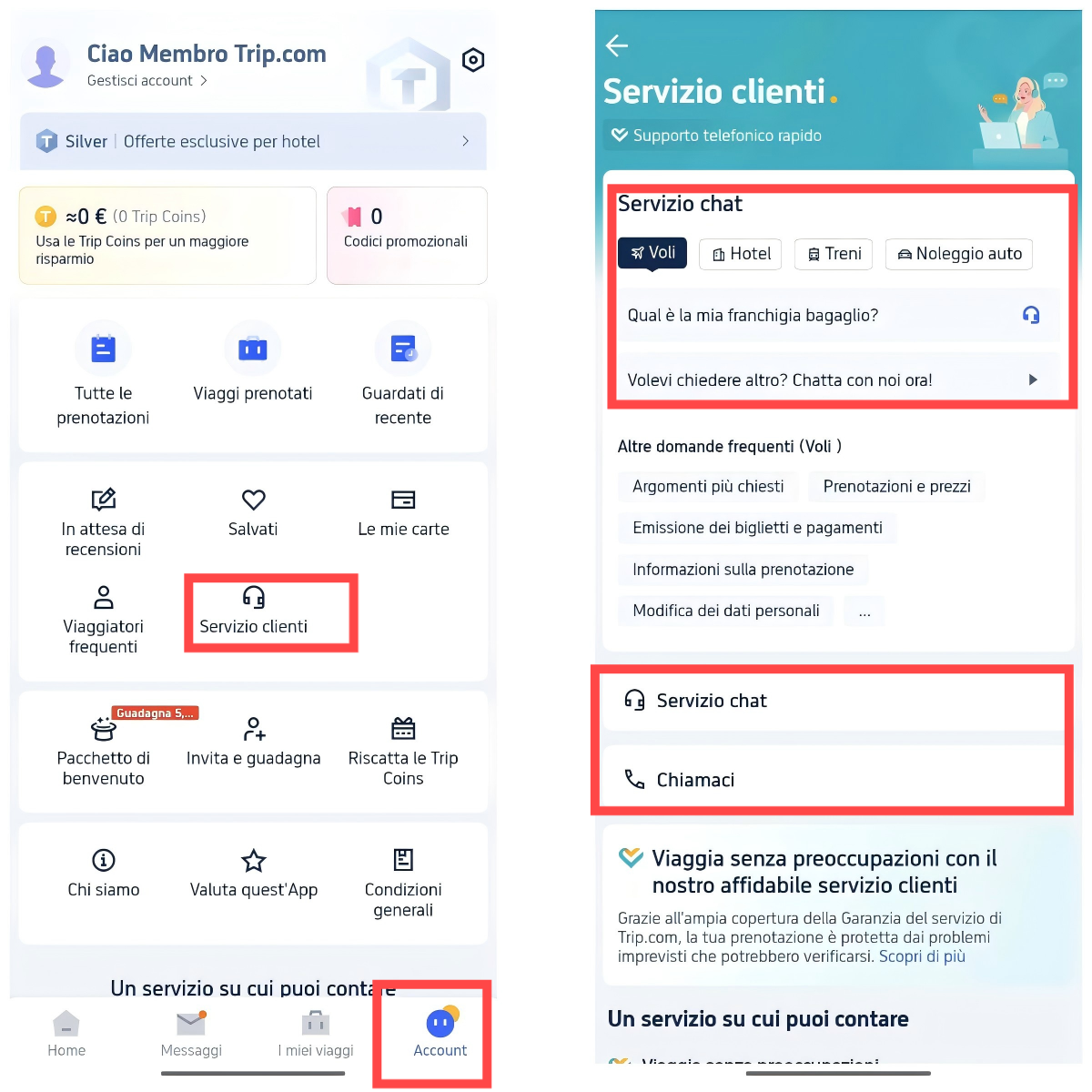 Trip.com offre vari servizi al cliente, tra cui servizio chat, servizio chiamata. I clienti possono scegliere il servizio più adatto in base alle loro esigenze.