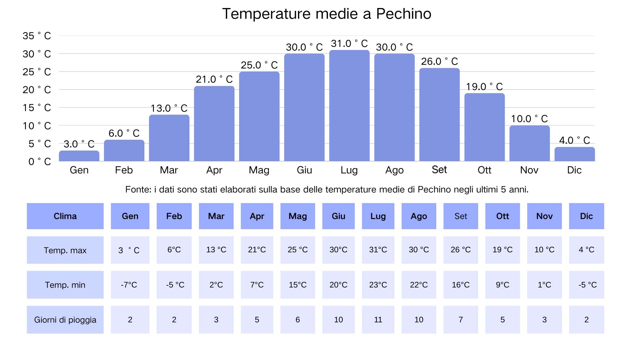 ** Fonti: China Meteorological Administration (CMA, 2020-2025), Climate-Data.org, WeatherSpark, WMO Global Climatology (2024).