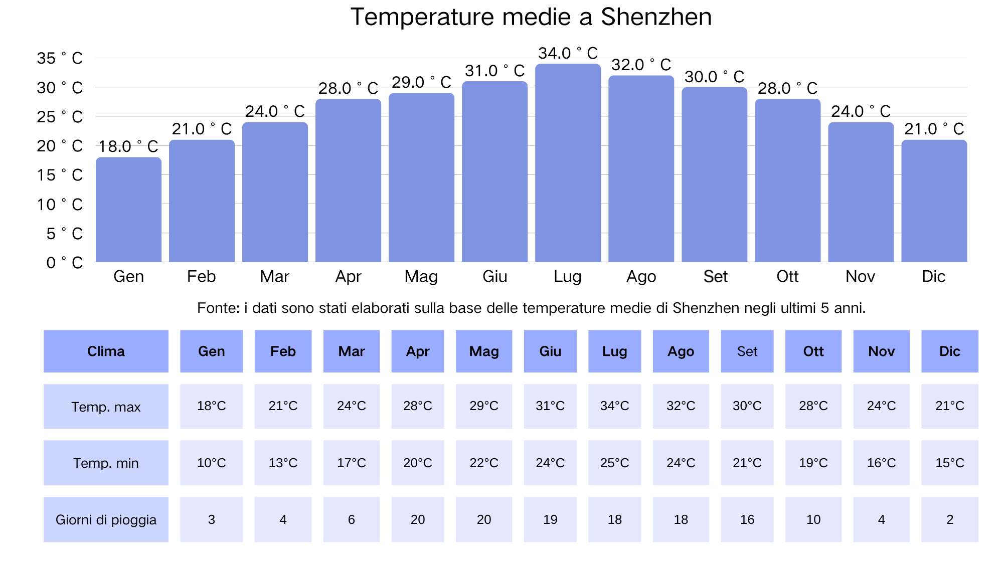 ☀️ Estate (da giugno ad agosto) | da 30 a 35 °C | da 28 a 32 °C | da 22 a 28 °C | da 22 a 30 °C |
