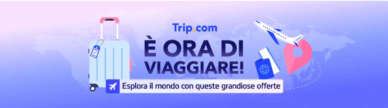 In questo articolo abbiamo raccolto i più recenti e completi codici sconto Trip.com Italia, inclusi: coupon promozionali per hotel, offerte speciali su soggiorni e sconti sui voli! Approfittate delle migliori tariffe per i vostri viaggi, sia in Italia che all’estero 🔥. Prendete subito il vostro codice sconto Trip.com!