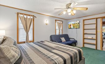 1 bedroom with comfortable bed and futon and mattress for extra sleeps