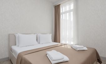 Прекрасное расположение , красивый вид. Квартира чистая , присутствовали небольшие поломки , замок в ванной , сушилка. Но в целом и общем прекрасные апартаменты за свою стоимость.