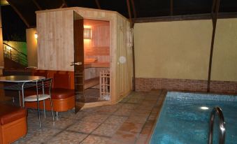 Для семейного отдыха, тихое месторасположение, 20 мин до моря пешком. Есть небольшой бассейн и сауна. Доброжелательный персонал, ненавязчивый сервис. Парковка для автомобилей на 6 мест((. Кровать удобная, кондиционер, телевизор, чайник только в люксах. Есть завтраки и ужины, говорят, вкусные.