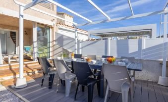 Casa a schiera "Rochelongue", su 3 piani. Posizione tranquilla in una zona residenziale, a 300 m dal mare, a 300 m dalla spiaggia. Per uso privato: terreno 94 m2 (recintato), curato giardino (recintato), parcheggio, box. Negozio, negozio alimentare, supermercato, shopping center, ristorante, bar, panetteria 200 m, fermata bus "Mail de Rochelongue" 550 m, spiaggia sabbiosa "Rochelongue" 300 m. Porto turistico 3.3 km, campo da golf (27 buche) 6 km, tennis 3.9 km, maneggio 1 km. Attrazioni nelle vicinanze: Ile des loisirs 2.5 km, Casino 3.3 km, Aqualand 1.6 km.