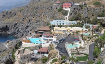 Ricordava un villaggio anni 70 a causa dell’architettura vecchia, e per non parlare della strada pericolosa e a picco da percorrere per arrivarci. Perso nelle montagne e senza alcun segnale, non era possibile effettuare chiamate ne tantomeno utilizzare il wi-fi del resort (che non ha mai funzionato) o il proprio router. Le stanze erano piene di ragnatele e polvere, il bagno di pessimo gusto, col soffione che non si manteneva, formiche nel lavandino, doccia a pochi centimetri dal water e la vasca da bagno sporca di qualcosa di giallognolo (che abbiamo chiesto più volte di pulire senza alcun successo). Pessimo il servizio di pulizia, non sostituivano i rotoli di carta igienica finiti e un giorno che lasciammo sul pavimento delle asciugamano, al fine di cambiarle, le hanno ripiegate e appoggiate sul mobile (non che il pavimento fosse così pulito). Colazione ricca ma scadente e monotona, le forchette erano sporche di nero. La palestra non è definibile tale, come qualsiasi altro servizio offerto da tale resort, quale anche la discesa a mare, con un prezzo aggiuntivo da pagare. Una stella solo per i panorami mozzafiato che offre.