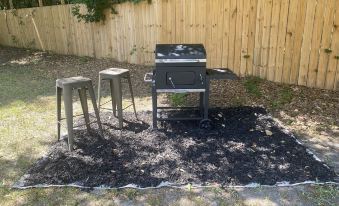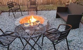 Very clean and nicely decorated. Comfortable beds. We loved the details highlighting the historical cottage. Laundry room and fenced yard very convenient. Very minimally stocked, but many convenient stores close by. Excellent location for Highfields horse show.