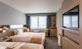 Typical Japanese business hotel with decently sized room for such a hotel that usually provides tight spaces. Clean, modern room, kind, flexible and friendly staff, and good amenities for the price (good cost performance). My only complaint was the breakfast offering, which had very limited options for western food, buffet was not replenished although I arrived at 09:00 (buffet ends at 10:00) and there was only 1 old black coffee silex that was sitting almost empty on a burner for a long time/no cafe latte or cappuccino, etc. I had to ask the rather inattentive staff for fresh coffee and replenishing of eggs and the cheap ham they had. Also, zero butter and only highly-processed and unhealthy cheap margarine. Very little fruits on offering also. For what they offered, it would be better to avoid the breakfast there and eat elsewhere. Apart from that the hotel is nicely planned and managed.