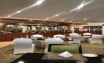 I 2 ristoranti in loco propongono una scelta di piatti internazionali: l'Al Ghoroub è aperto tutto il giorno e serve pietanze internazionali a buffet e alla carta, mentre il Ciao è specializzato in cucina italiana.