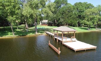 Enjoy swimming or floating in the water off of the covered boat dock during the day, and watch the fireflies dance in the back yard at night from the large covered deck. Our home is conveniently located just a block away from the boat ramp where you can load your own boat or jet skis.