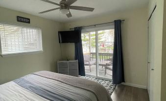 Condo was nice. Everything seemed pretty new and updated. Beds were comfy. Bathroom was clean and new looking. The back porch was great to sit out and look at the canal. Right on the main street but did not hear traffic noise at all. Air conditioning was working very well in the extreme hot weekend.