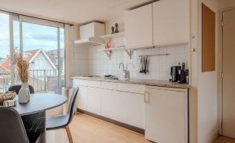 This nice apartment located on the second floor of the complex on the Laat, Alkmaar is fully furnished. The living room with open kitchen, nice dining area and sitting area with smart TV is light and spacious. The kitchen has a hob, Nespresso machine, toaster and of course a complete set of dishes.