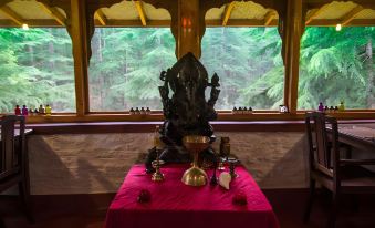 This place is a mix of culture, spiritual essence, and natural beauty. Just in front there's a stream, the temples at walkable distance add to the convenience, the place is beautifully designed and maintained. The staff is very polit, friendly, and helpful. I love this place for everything it has and must visit every year especially in rainy season.