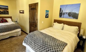 The bedroom includes two queen beds, full dresser and TV. Living space includes additional TV, blue tooth stereo and two couch futons (please note linens are not provided for the futons). Full kitchen (except dishwasher) with all amenities. Radiant heating, warm, clean and relaxing. Outside area includes a covered deck and grill with mountain views.