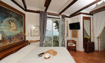 The two bedrooms have large wardrobes, safety-box, color television and a full bathroom with shower. The lounge area, with its cool terracotta tiles and wide windows embracing the sea, has a color television and a two-seater sofa bed by Divani & Divani by Natuzzi. There is available also a library with a wide selection of reading books and novels in English language. It is the perfect relaxing space to retire to after a day of enjoying the Coast. The complete modern kitchen boasts a new oven with gas cook top and overlooks a cozy four-seat dining table. And why not a tinker on the antique piano after dinner? The bright dining area also comes with more of those luscious sea views. A refrigerated wine cellar is inside the house, from where you can buy Italian red and white wines, of the most prestigious. The Villa offers also a romantic relaxation corner, a GAZEBO with seaview where you can relax while reading a book ....and another special feature :