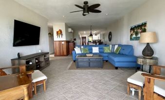 Both bedrooms have their own tv's and a/c in case you need some alone time. The large verandas with oversized sliding glass doors are a great place to view the Caribbean or the pool below. There is air conditioning throughout or you can open the sliding doors and let the ocean breeze gently lull you to sleep.