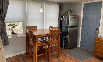 Although this efficiency apartment is in a basement, the large windows keep the apartment feeling open and spacious. There is a stovetop, microwave and toaster for cooking your own meals, as well as a 3/4 fridge. You'll also have access to wireless internet, a patio, fire pit and hot tub. At night, the path to and from the apartment is well lit for safe access. We specifically constructed the space with noise canceling features, but you may still hear guests above if there is someone staying in the upper portion of the duplex.