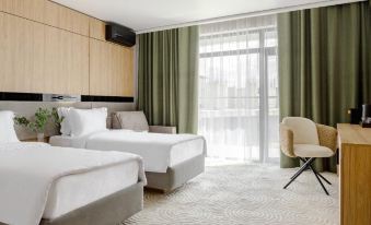 Заселение прошло отлично , номер дали раньше положенного времени, так как были свободные номера, это было очень кстати так как устали с дороги. Девочки на решепшн впрочем как и весь персонал , очень внимательный и уважительный это прям огромный плюс отелю , чувствуешь себя с момента заселения долгожданным гостем. У нас было два номера рядом 204 и 210, номера одинаковые с классным видом на бассейн, шума в номере не было слышно. При заселении была в каждом номере бутылка шампанского, хорошая косметика , белоснежные мягкие халаты даже для детей . Кровать и подушки отменные , это важно , очередной плюс . Номера современные комфортные. в телевизоре много приложений это очень удобно , вечером смотрели свои передачи и фильмы на вк видео . Питание очень достойное , проблем нет накормить детей начиная от фаст фуда до супов . Для взрослых выбор блюд на 5+ и морепродукты выпечка , много мяса в разных вариантах , для ППШНИКОВ тоже большой выбор . Очень удобны браслеты , не нужно носить с собой карточки ,всегда на руке ! Пляж очень близко от отеля При выходе из отеля очень развитая инфраструктура , расстояние от жд вокзала полтора км примерно ( на жд очень приставучие таксисты,яндекс такси в помощь) Бар в ресторане для нас был минусом , в первый день еще было нормально но на второй день приехало много гостей и тут они реально не справляются , просто чтоб налили напиток или воду к приему пищи приходилось выстоять очередь , пока бармены неспешно делали коктейли Отель однозначно рекомендую.