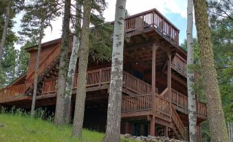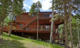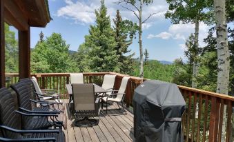 Enjoy family time in this beautiful mountain home tucked into the aspens and pines. Poised high above Angel Fire with incredible mountain and valley views, the double decker wrap-around decks provide a treehouse-like setting.