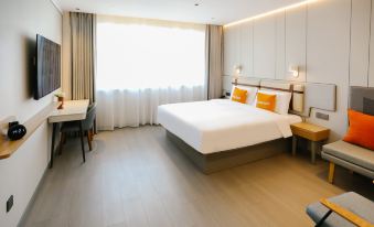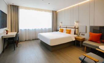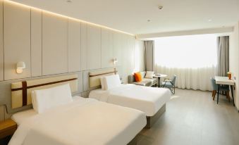Home business travel Suzhou Guangcaicheng express station store is located in Huaihe West Road, the main road of Suzhou City, on the east side of the South Gate of Guangcaicheng market, in the center of Suzhou new urban area, convenient to the express station, Hexu Expressway, railway station, surrounded by banks, administrative service centers, gymnasiums, hospitals and other supporting facilities, tourism transportation is very good.Home business travel involves simple and modern decoration concept and integrates many modern decoration elements. The bright floor to ceiling windows in the lobby are matched with unique rest tables, which makes you feel different office atmosphere.