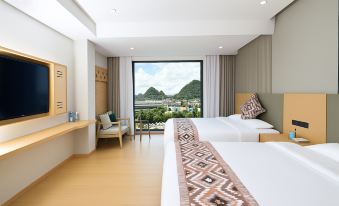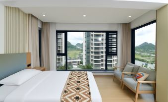 A tranquil retreat amidst urban hustle, this understated luxury haven redefines modern travel through natural aesthetics. Rooms radiate spacious serenity with warm wood tones blending seamlessly into soft beige palettes, while floor-to-ceiling windows invite cascading sunlight and crisp air to create a "breathing sanctuary". Strategically nestled in a quiet enclave yet just 200 meters from the high-speed rail station – a leisurely stroll delivers instant tranquility. The adjacent bus stop offers direct access to Huangguoshu Waterfall, while private carpool services at the doorstep effortlessly connect you to surrounding natural wonders.