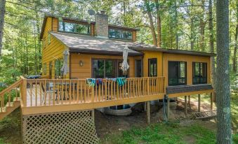 Enjoy your own private dock and fire pit right next to the lake on your sand beach. Two 14' row boats, canoe, life jackets and a paddle boat are also provided. The swim area is ideal for small children- with a nice sand base past the dock. Also included are 4- kayaks.
