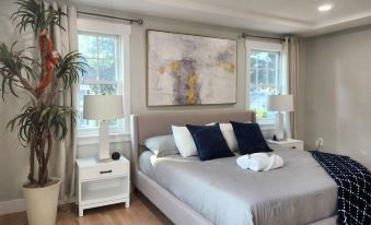 • Master Suite: King bed, large bedroom with sitting space, luxurious bathroom featuring a large bathtub + oversized shower.