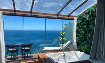 Excelente quarto (estilo romântico) com vista perfeita do mar. É possível ir a pé para o mirante do Pontal da Atalaia. A vista da piscina é incrível e foi possível ver baleias.