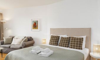 Modern one-room apartment, very clean, very good bed, great view of the lake