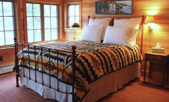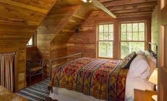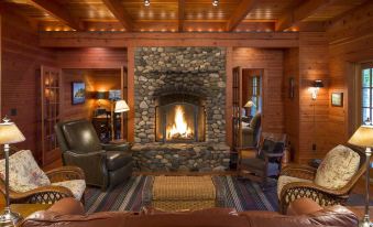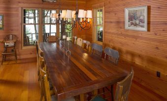 Our architecturally designed cottage has an old world feel. The all-wood interior on the main and upper floors, most of which is milled from old growth Douglas Fir timbers, lend warmth and character to the home. The wrap-around screen porch provides protected outdoor space for dining, reading, playing cards or taking an afternoon nap. The fieldstone rumsford fireplace will take the evening chill out of the air and the 12' dining table will seat a crowd for special meals prepared in the gourmet kitchen.