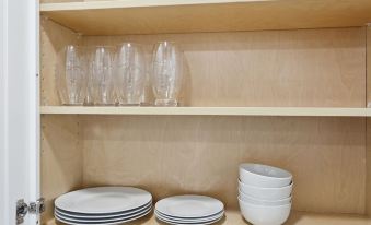 ⭐️Kitchen: The all-white kitchen features sleek stainless steel appliances and comes fully equipped for all your culinary needs. You'll find a washer and dryer for added convenience, making your stay stress-free.