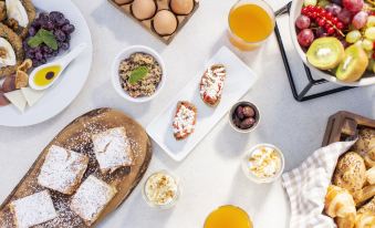 La struttura serve una prima colazione all'americana ogni giorno nell'apposita sala, e vi invita ad approfittare della terrazza all'ultimo piano per rilassarvi gustando un drink mentre ammirate la vista sull'Acropoli.