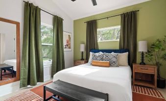 Enjoy a peaceful stay at this 4-bedroom house in Austin. This gorgeous property features 2 king beds, 1 queen bed, and 1 full bed, perfect for a group getaway. With 5 bathrooms equipped with hair dryers and showers, guests will feel pampered during their stay. Other excellent amenities include a washing machine, AC, iron, heating, and WiFi. We hope you enjoy what our place and Austin has to offer.
