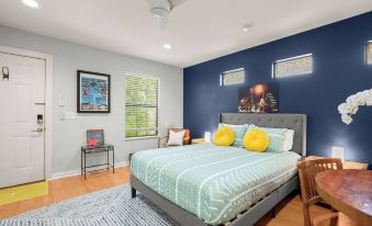 A true local Austin experience awaits you at The Johanna Bee. Nestled amongst beautifully manicured houses in one of Austin’s oldest and central neighborhoods, Bouldin Creek, you’ll enjoy the convenience of being steps away to some of Austin’s most unique local spots. Cafes, restaurants, food trucks (like Gordough’s!), coffee and art galleries are just a 5-10 minute walk away on S. 1st street. South Congress (or SoCo) with it's vintage shops, great brunch spots, and the famous Torchy’s Taco’s is just 0.7 miles/10 minute walk away (or even faster by electric scooter!). Downtown and Zilker park are a 6 minute drive and we’re less than 10 minutes from Rainey St and 6th St where you’ll find some great nightlife. We're located a quick walk to the "Greetings from Austin" mural so be sure to stop for a picture! You’ll receive our carefully curated welcome guide upon booking to help you plan your Austin adventure.