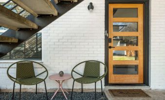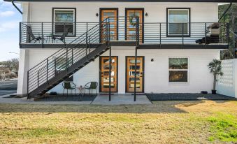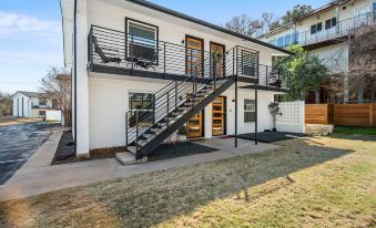 Experience modern luxury in the heart of Austin! This stylish one-bedroom apartment boasts high-end finishes, an open floor plan, vaulted ceilings, and a fully equipped kitchen. The spacious bedroom features a walk-in closet and ensuite bath, while the living area offers a queen sofa bed for extra guests. Step outside to enjoy natural light or relax in your private space. With nearby attractions like Zilker Park and downtown Austin, this is the perfect retreat for your stay.