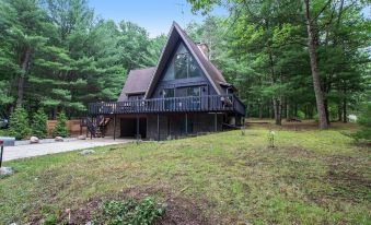 Welcome to our A-frame nestled in the woods. This spacious home easily accommodates large groups. With access to all the Canadian Lakes amenities, enjoy days of fun at the pools, gym, tennis courts, and many beaches/lakes with our kayaks and canoe. Play a few rounds at the nearby golf courses. At night, unwind by the private patio, firepit, hot tub, and one of the cozy bedrooms. Whether having alone time or time surrounded by friends and family, this house is a great hideaway to rest and relax.About pets:No pets allowed.About checkOut:Check out before 10:00 AM.About children:Children allowed: ages 0-17.About checkIn:Check in after 4:00 PM.About smoking:Smoking is not permitted.About minBookingAge:Minimum age to rent: 18.About events:No events allowed.