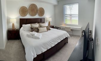 Stay at this brand new and fully furnished home in the heart of The National Golf and Country Club at Ave Maria, a peaceful and charming establishment that offers a resort-like lifestyle. This beautiful property includes two king beds (+1 high-quality inflatable Queen mattress), two full bathrooms, a large, fully-equipped kitchen, and a spacious living room. Other amenities include an in-unit washer/ dryer, 3 large TVs (one in each room), a bicycle and pickle-ball rackets, and a screened-in patio with a gorgeous golf course and lake view.