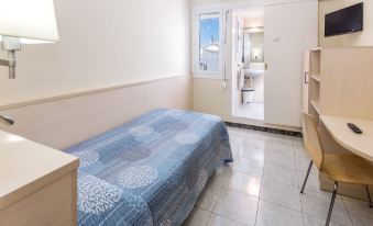Chambre de bonne pour une personne: literie top et personnel à l’accueil sympa mais en revanche le reste reste à améliorer : store défaillant, bruit des voisins avec portes qui claquent, bruits diverses des voisins de chambre.. pour dormir 4 heures maximum.