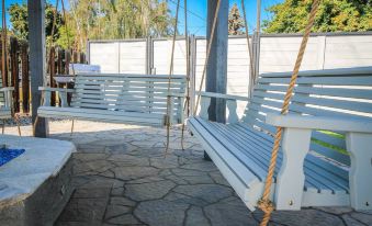 Don't miss out on our new outdoor gathering space, including a gas firepit and swings, perfect for relaxing in the evenings. The BBQ grill is also available for all guests to use.