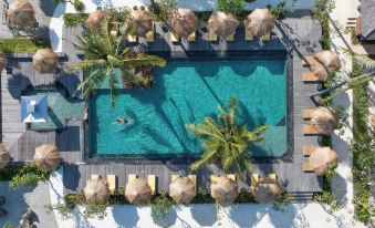 야자수와 부겐빌레아로 둘러싸인 수영장은 낮에는 햇살 아래 완벽한 힐링을, 밤에는 은은한 조명 아래 로맨틱한 분위기를 선사합니다.