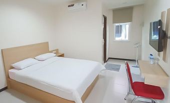 Lokasi dekeeet banget dengan coffe-sebrang guest house-. Deket dg Klinik Pratama Untan, sekitar 5 menit jalan. Deket juga dg Megamall, jalan kaki santai sekitar 15 menit melewati CW Coffe yang makanan minumannya enak menurut kami, dan Borneo Fresh yang jual buah segar. Ada juga toko Hijab. Dilengkapi RayyanMart yang sayangnya buka terlalu siang, dan tutup sekitar pk 22.00. Nggak repot kalau butuh makan pas malam n pagi after Shubh. Sayangnya lagi, kulkas ikut mati kalau “kartu kamar” dicabut, jadi riskan dengan makanan dalam kulkas. n, ndak ada Kartu Cadangan, padahal sewa kamar type Family yang kapasitasnya 3 orang😪😪. Amenities dikasih sekali saat baru datang, tanpa slipper. Air panas dingin bisa refill di lantai 2. Pemanas hanya di shower mandi, tidak di wastafel. Air basuh bersih, lancar dan banyak. TV banyaaak channel. No lift hanya tangga. Kamar kamar ternyata juga disewakan per bulan. Recommended, walaupun KEBERSIHAN KAMAR PERLU DITINGKATKAN. Petugas all, ramah.👍👍. Ada telpon “untuk komunikasi” ke petugas front desk.