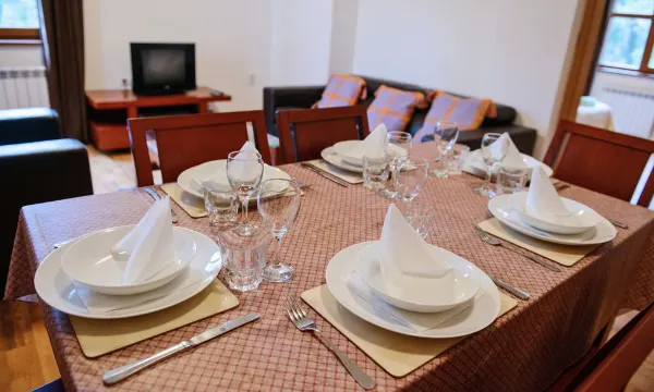 Spent a couple days for a ski weekend. The hotels has a good location towards the edge of Bansko right on the main road and just about a 5 min walk away from the centre and gondola lift. You will find several ski rentals stores & restaurants closeby. Stayed in a room/studio, equipped with a kitchen corner which wasn't used and other basic furniture. Bathroom is acceptable but not very spacious and shower not ideal due to water splashing out. The room also had also a little balcony with a view of the backyard. Tv didn't have too many channels and all local. The is a small indoor pool adjacent to lobby area and also a British style downstairs. Check in & out was smooth. All in all, it's an ok place for a short stay and a limited budget.