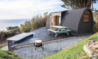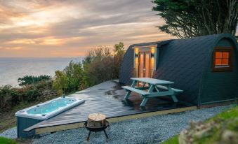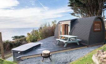 Boasting a stylish shower room, great kitchen facilities , comfy double bed, TV & of course WIFI. Your own private Hot Tub overlooking Cardigan Bay, Outdoor firepit and picnic area.