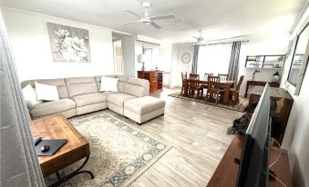 Inside, you’ll find multiple living areas to relax in, along with everything you need for a comfortable stay. Dine indoors or make the most of Gladstone’s fantastic weather with two private outdoor areas, including an enclosed all-weather space for when the skies aren’t so kind. Fire up the BBQ, enjoy a drink, and unwind.