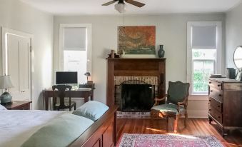 Nestled in the quiet, historic district of Bastrop, Texas, only thirty miles from Austin, we welcome you to stay at “Yerba at Bastrop:” a beautiful, pre-civil war, two-story historic home listed in the National Register of Historic Places and a designated Texas Historic Landmark. Surrounded by lovely organic gardens, the house boasts natural wooden floors throughout and large airy windows in each room, overlooking the plants and trees below. Only a 5-7 minute walk away, the town center awaits you - a vivacious scene of antique stores, live music, restaurants, and a vinery—as do the walking trails, fishing, and other water sports of the splendid Colorado River. Bastrop State Park is just over two miles away and known for its Lost Pines forest, hiking, biking, and outdoor swimming.