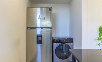 Brand new furniture, fully equipped open kitchen setup, with smart TV, AC, and 2 showers and bathrooms.