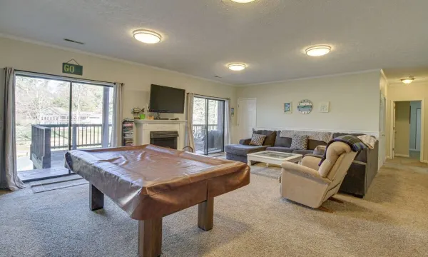 - Exit to a large open deck for your outdoor dining pleasures as you overlook the lake.