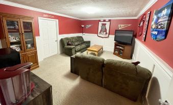 Spacious, lower-level 1 bedroom, bath & den area. Private, well-lit entrance and parking. Quiet, safe, family-friendly neighborhood that is great for walking. Close to all area colleges (10 mins to LU), hospitals, Blue Ridge Pkwy, Peaks of Otter, Bedford National D-Day Memorial, Thomas Jefferson's Poplar Forest, Historic Appomattox, Smith Mountain Lake, Golf Courses and newly renovated downtown Lynchburg. Walking trails and professionally designed disc golf course are literally in our back yard.About pets:No pets allowed.About checkOut:Check out before 12:00 PM.About children:Children allowed: ages 13-17.About customRules:Please remove shoes prior to walking on the carpet. Cleaning charges may apply for stains or smoke smell on carpet or furniture.This is a basement area. Behavior we find loud, obnoxious, unacceptable/inappropriate will not be allowed and you may be asked to leave the property,Any stay over 7 days must have owner approval.About checkIn:Check in after 4:00 PM.About smoking:Smoking is not permitted.About minBookingAge:Minimum age to rent: 21.About events:No events allowed.
