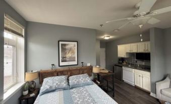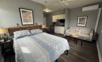 Escape to this spacious little condo at Mariner's Landing Resort at the Pointe, providing room for 2-3. This is an efficiency condo with one room containing a king bed and a full sleeper sofa, with private spacious bathroom with tub. This property showcases a larger space than many of the efficiencies at the resort, as well as a window with a lake view.