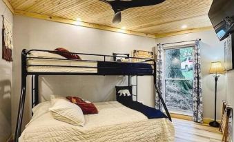 Gas fireplace in family room. Electric fireplace with remote in main bedroom with cozy Queen bed. 2nd bedroom with bunkbed, single over a double and trundle.