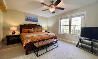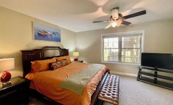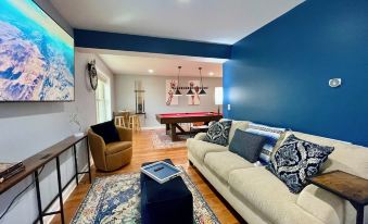 This apartment features a cozy yet functional layout, perfect for both relaxation and entertainment. The living room is bright and inviting with modern decor, an electric fireplace and smart TV. The compact yet efficient kitchenette is designed for convenience. It comes fully equipped with a small refrigerator, induction stove top, microwave, Keurig coffee maker and toaster oven/airfryer. A small dining area adjacent to the kitchenette offers a cozy spot for meals. Both bedrooms are well-sized, one king and one queen. Each bedroom has its own closet space, smart TV and large windows. Two full bathrooms provide privacy for each. The highlight of this space is the fun-filled game room. This dedicated space features a high-quality pool table, perfect for unwinding with drink in hand. The room is versatile and can also be used for other games, with additional space for seating.About pets:Pets allowed: dogs (limit 1 total).About children:Children allowed: ages 0-17.About smoking:Smoking is not permitted.About events:No events allowed.